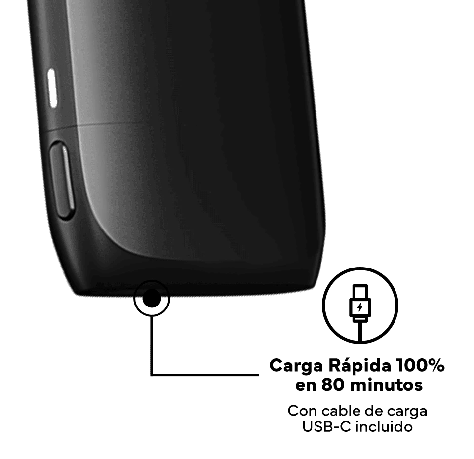 Con calentamiento cerámico, botón boost, batería removible, botón bloqueo/desbloque y cargador tipo USB-C.